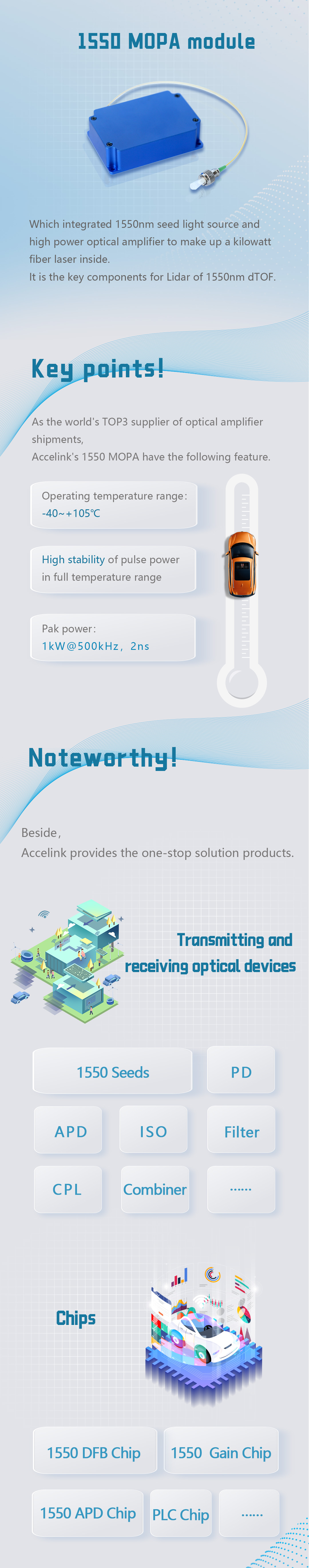 Adhering to the industrial chain division of labor and cooperation, complementary and win-win cooperation attitude, Accelink is committed to providing more reliable products and services for the lidar industry of vehicles.