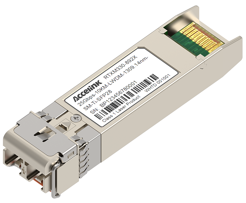 RTXM330-201 25Gigabit 1310nm SFP28 transceiver modules are designed for use in wireless front-haul links on up to 10km of single mode fiber. They are compliant with the SFF-8472, SFF-8402,SFF-8432 IEEE802.3cc and applicable portions of SFF-8431.The optical transceiver is RoHS compliant.