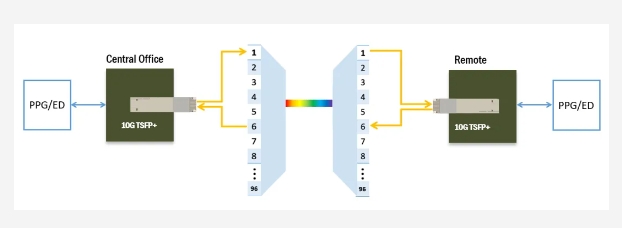 該光?橥ü刂萍す餛韉墓β市藕趴,使對端光?榻郵詹⒉囟ǖ腖OS建立/撤銷信號,建立一條帶外通信信道,實現兩端光?櫚氖侗鴆⑼瓿賞ǖ佬毯退。采用可調諧光?樽疃囁杉嬡96個DWDM通道,并通過MSA協議實現了不同廠商產品的互聯互通,有效幫助客戶解決了傳統DWDM光?椴渴鷙馱擻耐吹恪